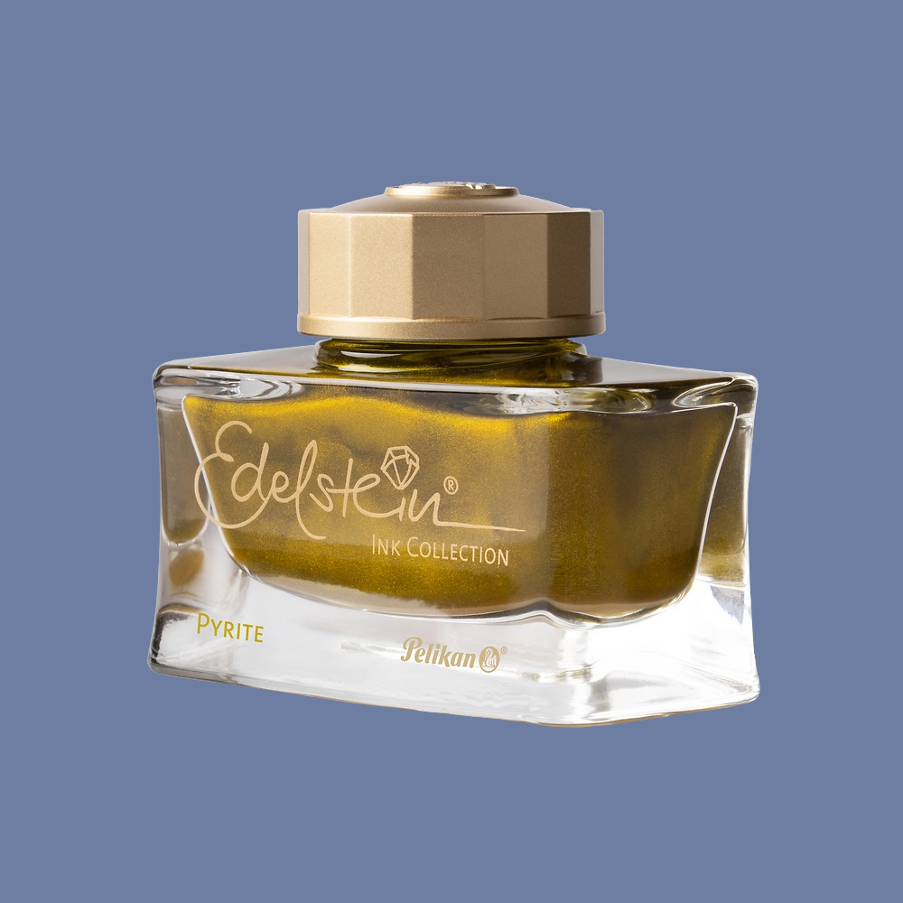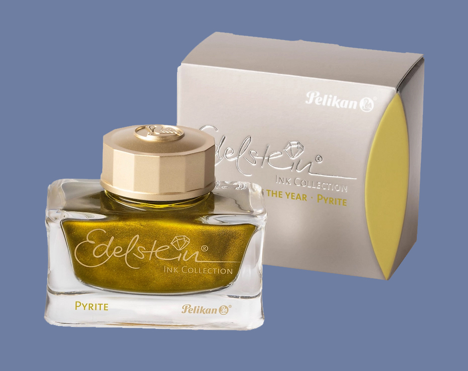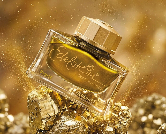 Atrament Edelstein Ink of the Year 2026 Pyrite dostępny jest w eleganckim flakonie o pojemności 50 ml, charakterystycznym dla kolekcji Edelstein. To doskonały wybór dla kolekcjonerów, miłośników piór wiecznych oraz osób poszukujących wyjątkowego koloru do codziennego pisania. Edycja limitowana na rok 2026 dostępna od kwietnia 2026.