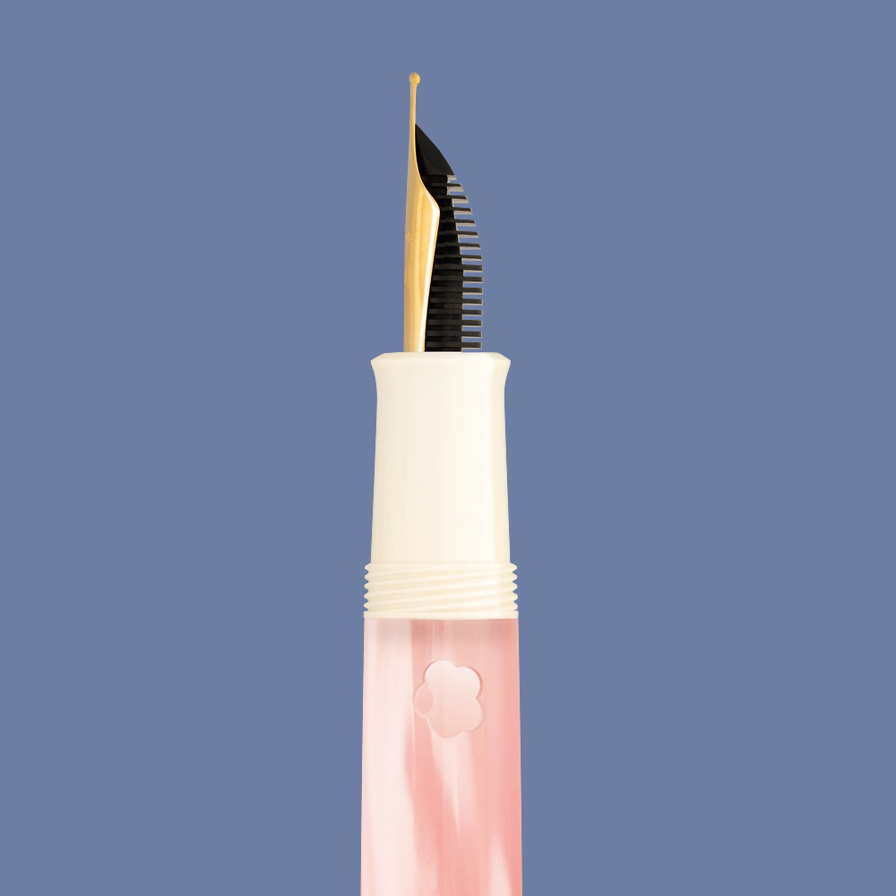 Pelikan Classic M200 Cherry Blossom wyróżnia się delikatnym, marmurkowym korpusem w odcieniach różu inspirowanych kwiatami wiśni. Subtelne przejścia tonalne nadają każdemu egzemplarzowi unikalnego charakteru. Całość uzupełniają eleganckie, złocone wykończenia oraz klasyczny klips w kształcie dziobu pelikana. Lekka konstrukcja i idealnie wyważony korpus sprawiają, że pióro doskonale leży w dłoni i zapewnia wysoki komfort pisania.