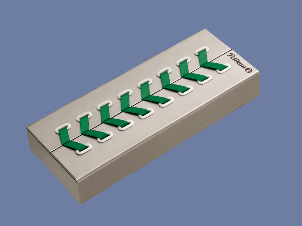 Korpus pióra wykonany jest z octanu celulozy w zielono-transparentne paski, co daje mu niepowtarzalny wygląd. Skórka z wysokiej jakości białego octanu celulozy nie tylko wygląda elegancko, ale jest również wytrzymała na zarysowania. Klasyczny klips w kształcie dzioba pelikana, a także precyzyjnie osadzone pierścienie, są dowodem na dbałość o szczegóły. Warto również zwrócić uwagę na ergonomiczny kształt uchwytu, który sprawia, że pisanie długich tekstów staje się przyjemnością.