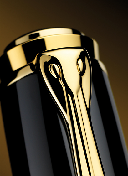 Korpus oraz skuwka pióra zostały starannie wykonane z czarnego octanu celulozy, materiału, który jest odporny na mikrozarysowania i charakteryzuje się doskonałą przyczepnością. Ergonomiczny kształt sekcji zapewnia wygodę nawet przy długim piśmie. Wykończenia pióra są elegancko pokryte 24-karatowym złotem, co dodaje mu luksusowego charakteru. Metalowy klips w kształcie dzioba pelikana to nie tylko estetyczny element, ale również zapewnia pewność, że pióro będzie zawsze pod ręką.