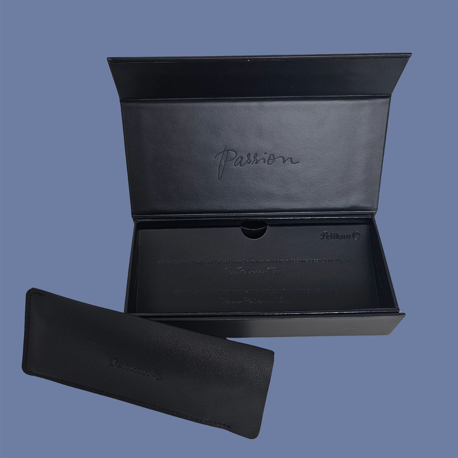Pióro jest dostarczane w luksusowym pudełku G30 w głębokiej czerni, co czyni je idealnym prezentem dla bliskiej osoby lub dla samego siebie. W zestawie znajduje się również estetyczne etui ochronne ze skóry ekologicznej, co pozwala na bezpieczne przechowywanie pióra oraz jego transport.